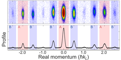 Example for growing excitation modes: A wave packet, which is initially centred at zero momentum, quickly spreads over the complete Brillouin zone due to interactions and periodic driving. Those instabilities make quantum simulation experiments challenging.