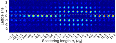 To measure the collapse of multi-site solitons we varied the scattering length after the quench and waited for 150ms. For increasing attractive interactions, the wavepacket increasingly shrunk until it localised into a single site, for even stronger interaction strengths it dynamically collapsed resulting in a loss of atoms and spreading of any remaining atoms. The resulting width was explained qualitatively by the 3D-GPE, which also predicted a minimum for a particular value of scattering length.